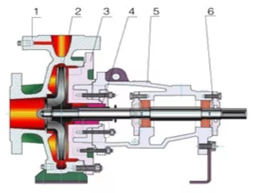 1、泵體 2、葉輪 3、泵蓋 4、機械密封 5、懸架部件 6、泵軸